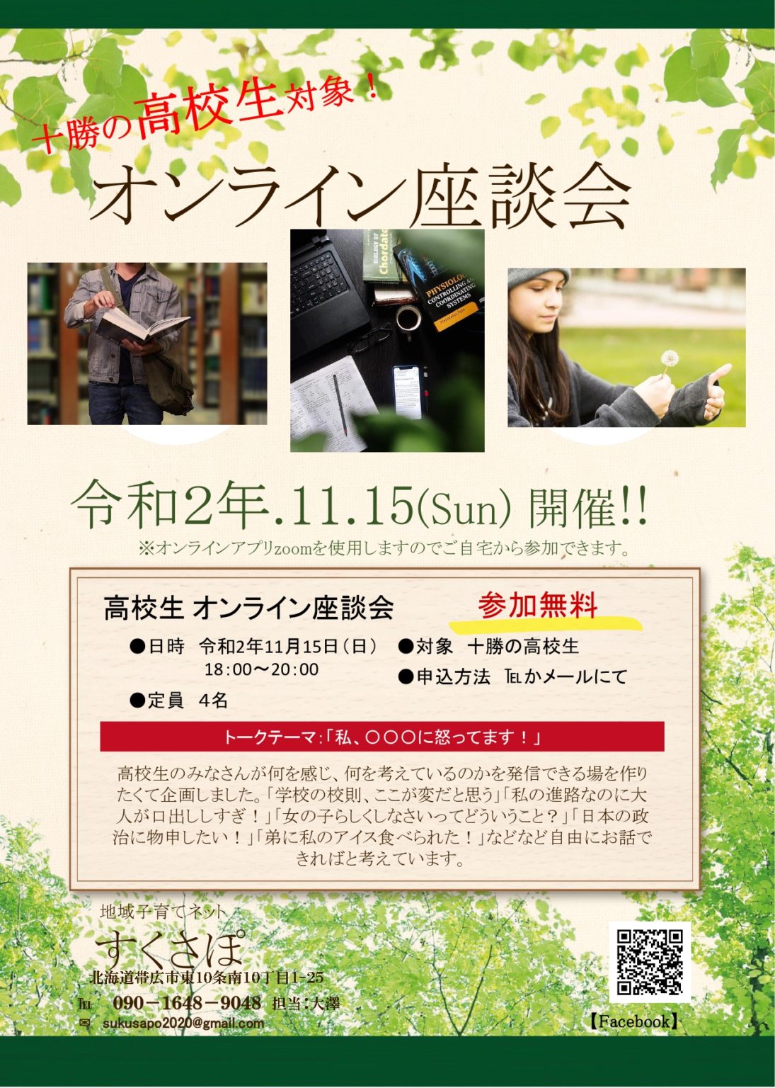 11月15日 第1回オンライン高校生座談会を開催しました!