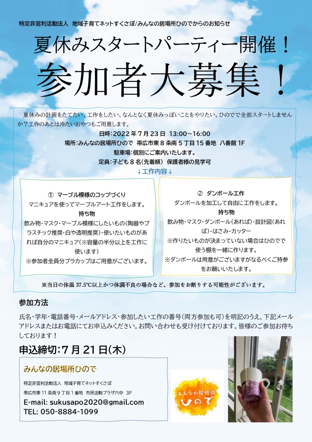 特定非営利活動法人 地域子育てネットすくさぽが運営する居場所です。
